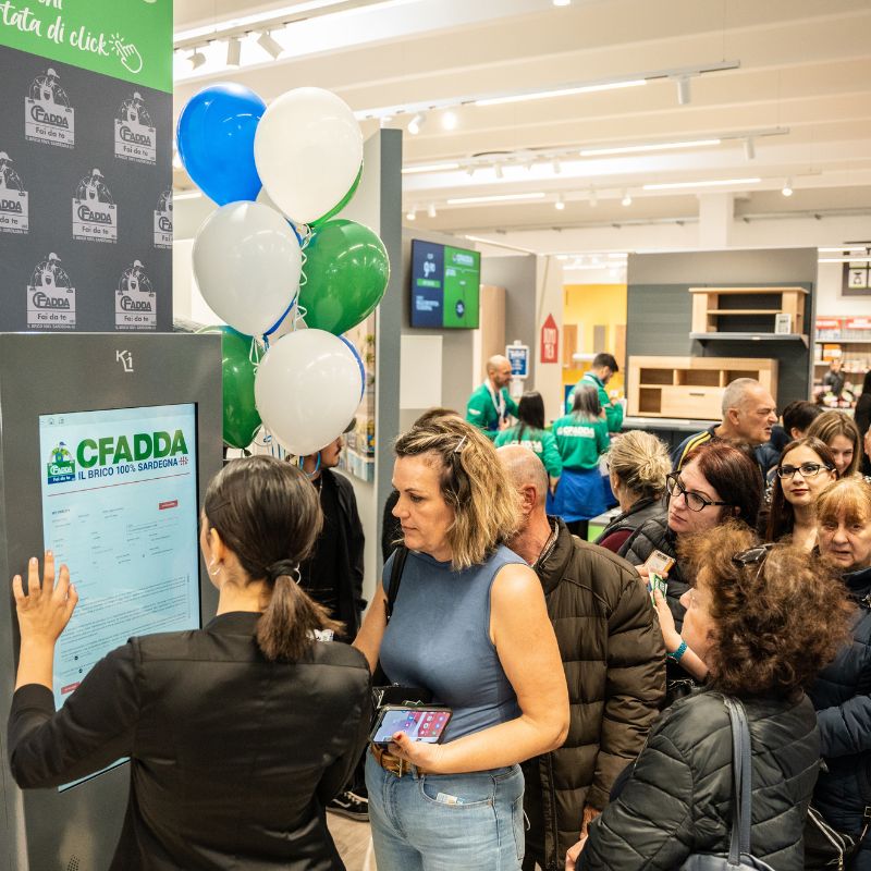Numerosi e grandi monitor illustrano i vari servizi disponibili (noleggio attrezzi, taglio legno, tintometro, ecc) e due totem touch screen permettono di sottoscrivere e aggiornare i dati delle Card Vantaggi CFadda, oltre che di acquistare tutto ciò che non è fisicamente presente nel negozio.